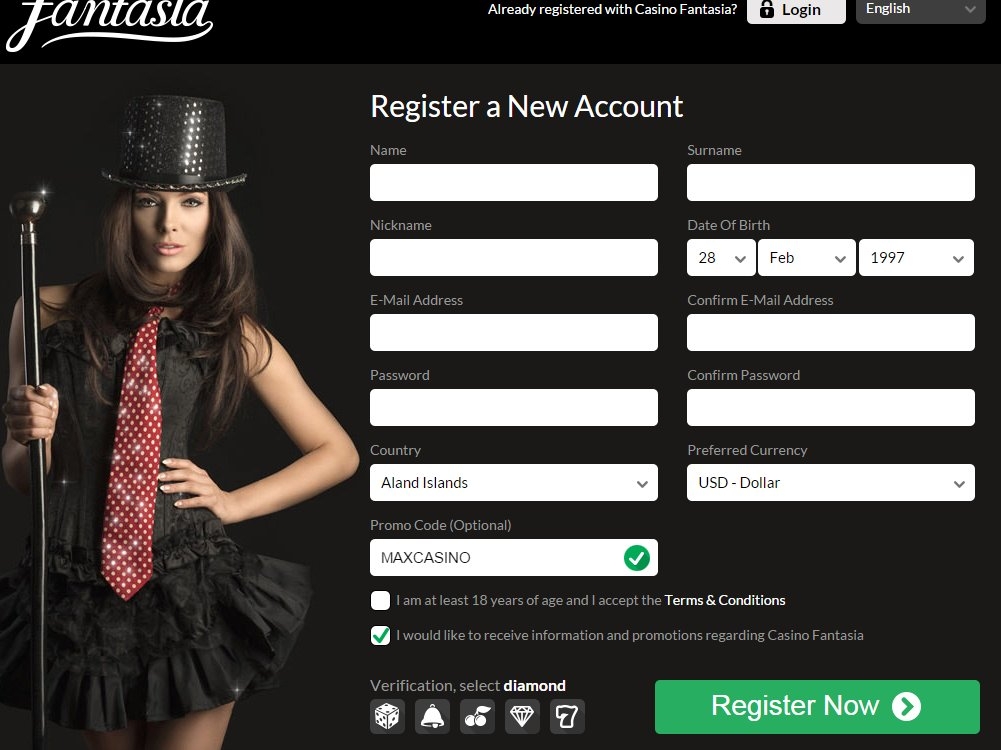 You can get a Casino Fantasia bonus if you start of by depositing a minimum of 10 USD. Subsequently you will then get 10 USD in bonuses, so you have total 20 USD instantly in your casino account. The biggest bonus is 250 USD and the bonus code: MAXCASINO should be used if you want this unique Casino Fantasia offer.