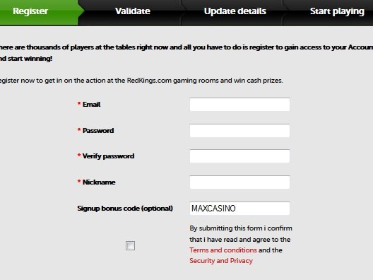 If you deposit 20 EUR, you will receive a bonus of , so overall you’ll get 20 EUR to add into your online casino account. At Casino RedKings the maximum you can get in bonus is 1000 EUR, and note that you must use our unique bonus code: MAXCASINO, to get your bonus.